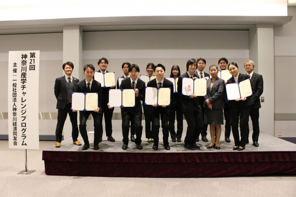 「神奈川産学チャレンジプログラム」は、一般社団法人神奈川経済同友会の会員が所属する企業と神奈川県内の大学が中心となり、産学連携による学生の人材育成を目的とした課題解決型研究プログラムです。企業が抱える経営課題に対して学生らが研究を行い、実践的で独創性のある解決策をまとめた研究レポートを制作し提案するというもの。実社会で発生している問題に具体的に取り組むことにより、問題解決能力の高い人材の育成を目指しています。