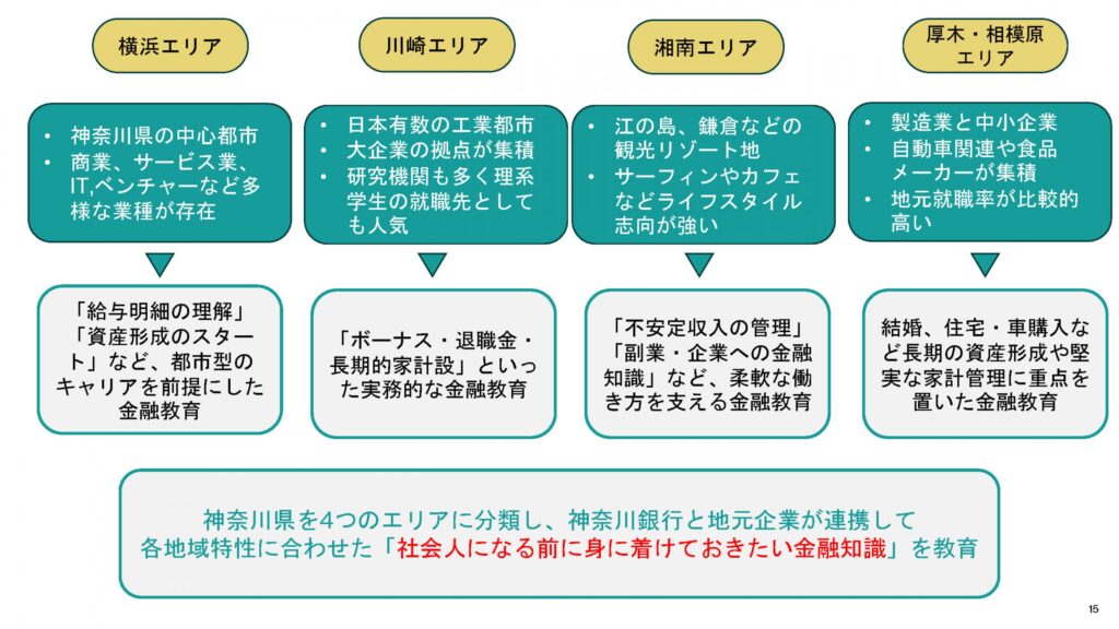 神奈川銀行の強みを生かした提案をしたく、「就活生に向けた地域マネーインターン」という金融教育プランを提案しました。学生が社会人になるうえで必要な金融知識を身につけ、仕事に活用できるよう同社と取引のある各企業でインターンを行い、実践的スキルを身につける機会にするというものです。同社は、地域住民のニーズを把握しており、地元企業との連携も強固という企業特性から、大手銀行との差別化ができていると分析したのですが、そういった点を評価していただけたことはとても嬉しく思います。また、私たちのチームは途中から合流するメンバーもいたので、プロジェクトを遂行するには、後から参加したメンバーと同じ方向に向かって取り組めるかどうかのチーム力が必要だということも学びました。実際にプロジェクトを進めるうえで、チームメンバーの入れ替わりの可能性も考えられるので、提案力のほか、コミュニケーションを取りながら全員で現状を把握し共有することが成功につながると感じました。最優秀賞をいただけたことが自信にも繋がったので、今後ここで培ったスキルを実社会でも発揮していけるよう頑張ります。
